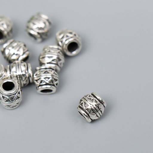 Цена за 12 шт. Бусина для творчества металл «Пузатая с узорами» серебро, 0.8×0.8 см