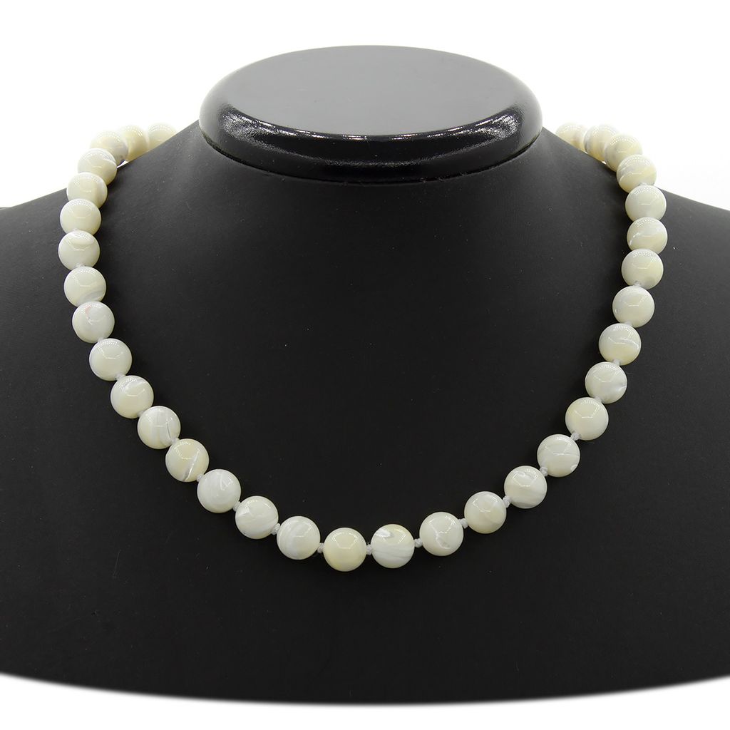• Перламутр белый (Индонезия), круглые бусинки 10мм, бусы 50см