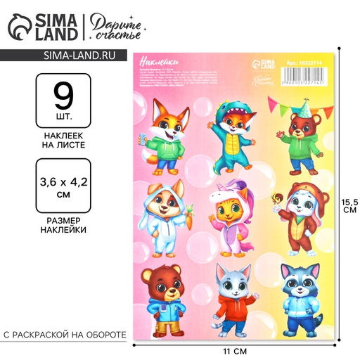 Цена за 10 шт. Наклейки детские бумажные «Весёлые ребята», c раскраской на обороте, 11×15.5 см