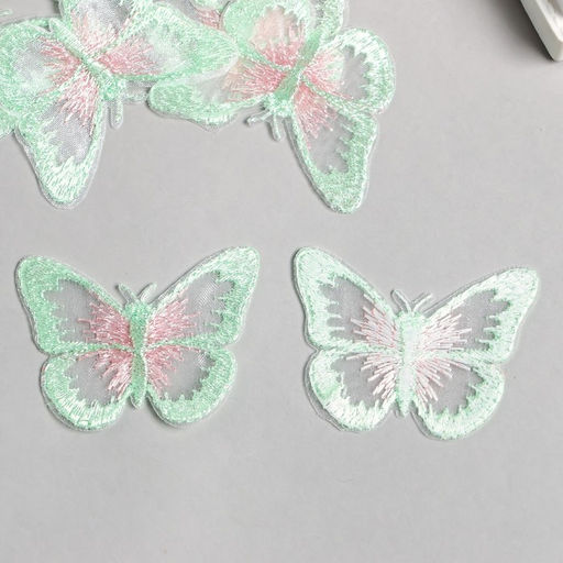 • Цена за 10 шт. Декор для творчества текстиль вышивка Бабочка зелёно-розовая, 4.3?5.5 см