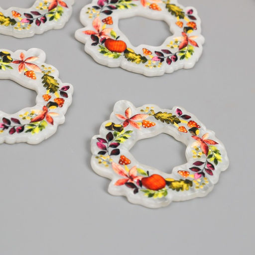 • Цена за 4 шт. Декор для творчества акрил Веночек с яблоками и грибами, 0.2?4?4.1 см