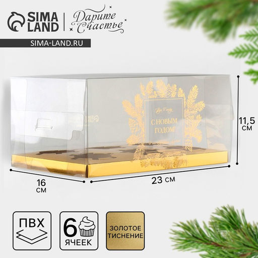 Цена за 5 шт. Коробка для капкейка «С Новым годом», 23×16×11.5 см
