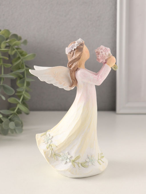 Фигурка полистоун Девушка-ангел в нежно-розовом платье, с букетом незабудок, 10?6.5?16 см