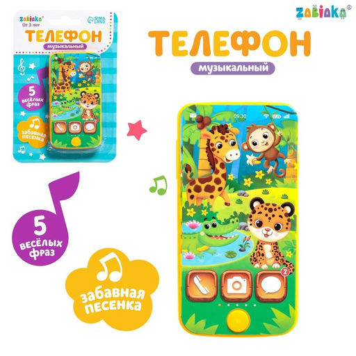 • Музыкальный детский телефон «Весёлая африка», звук, цвета МИКС