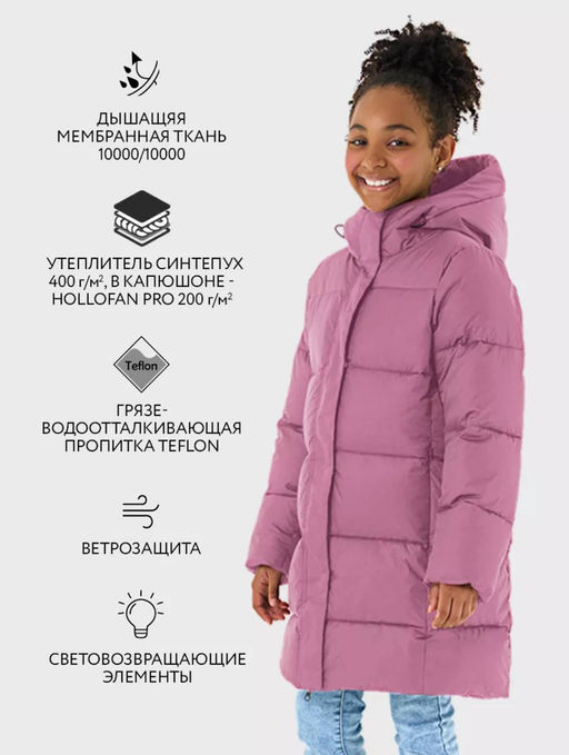 Утеплитель: синтепух 400 г/м2, в капюшоне - HOLLOFAN 200 г/м2