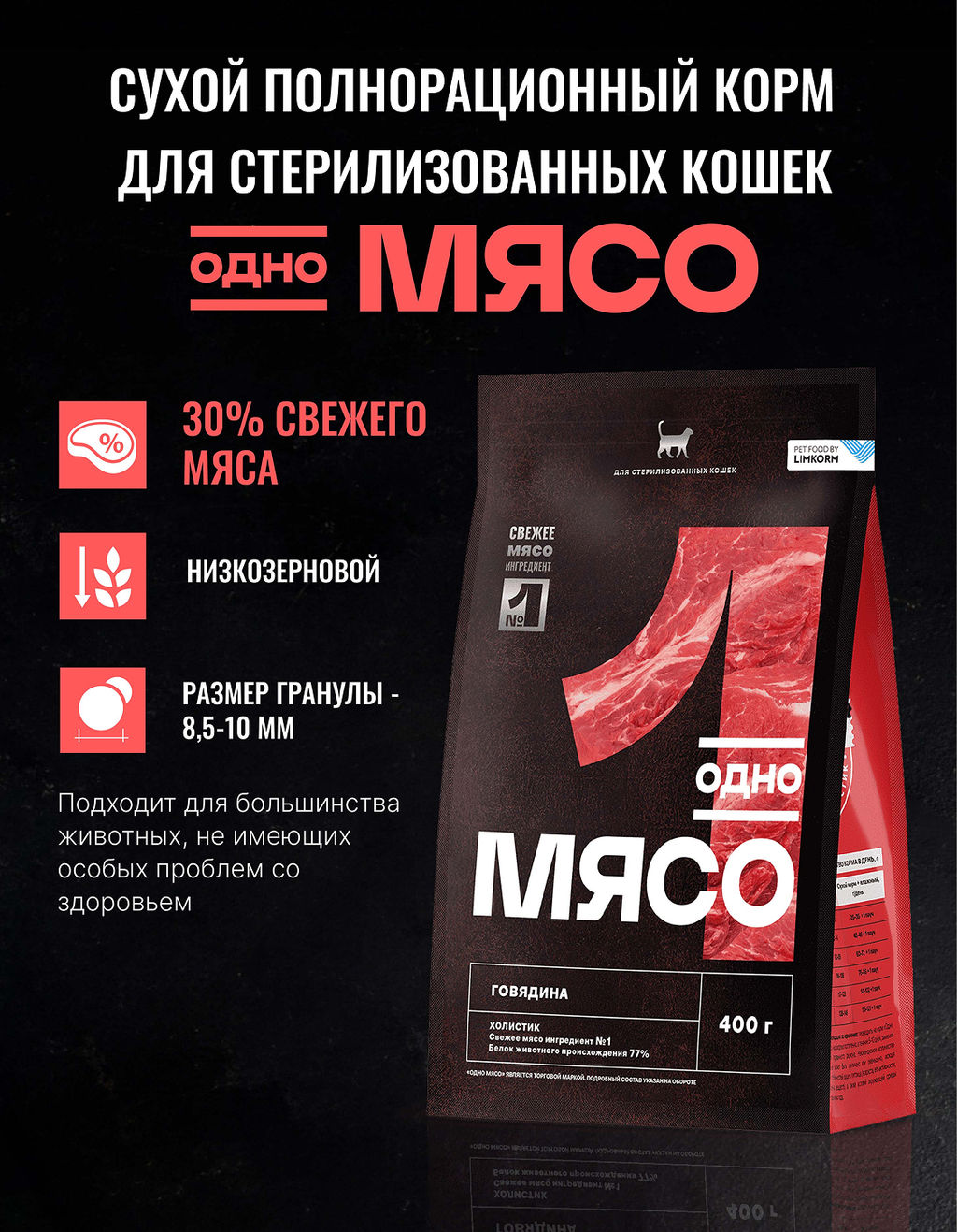 • Сухой корм для стерилизованных кошек с говядиной 98115/89346
