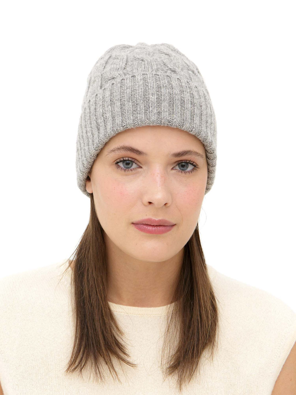 Эластичная вязка обеспечивает удобную посадку без давления. Шапка хорошо держит форму и аккуратно фиксируется на голове, создавая сбалансированный силуэт.