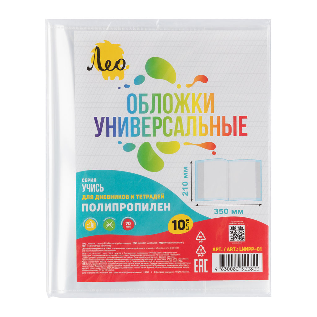 • Лео Учись Обложка универсальная для тетрадей и дневников LNNPP-01 70 мкм ( 210 х 350 мм) 10 шт. прозрачный