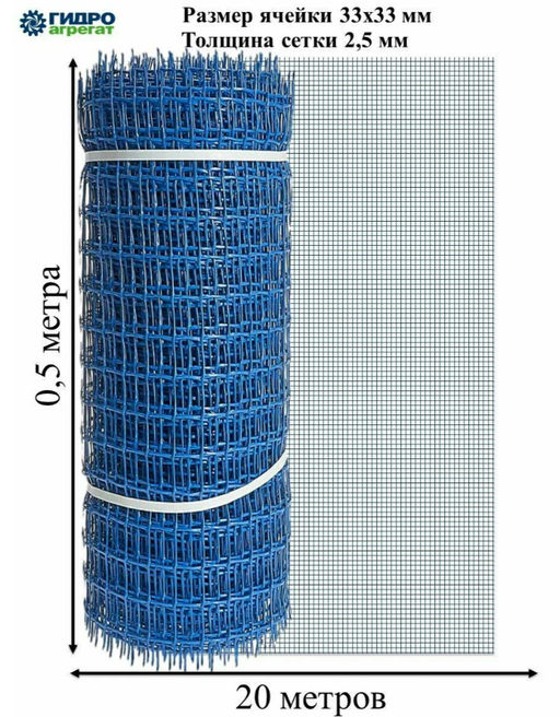 • Садовая сетка квадратная 33х33 (0,5х20) ПРОФИ синий
