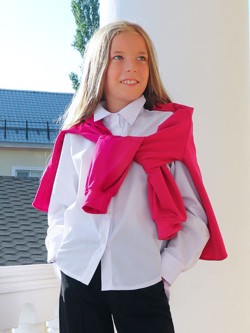 Блузка для девочки Соль&Перец на пуговицах. Асимметричная линия низа, рукава трансформируются в 3/4. Блузка прекрасно сочетается как с брюками, так и с юбкой, подчеркнет индивидуальный стиль девочки, и разнообразит ее повседневный школьный образ.