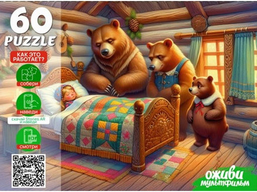 • Puzzle 60 элементов "Оживи мультфильм. Три медведя" (П60-3530)