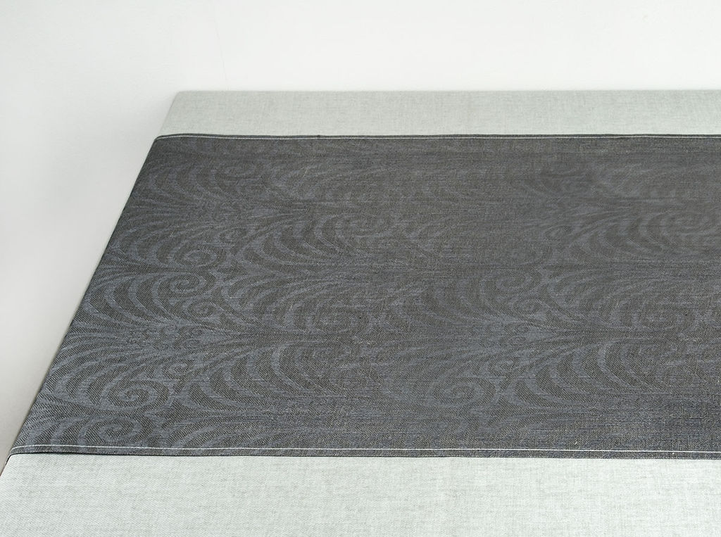 Артикул: 1490а Тип ткани: Лен Состав: 100% Лен Вид оформления: Жаккардовая Рисунок: Узор Цвет: Серый Применение: Кухня - Столовая Производитель: Россия Характер рисунка: Абстракция Оттенок цвета: Оттенки серого Упаковка: пакет пвх Тип изделия: Дорожка Размер скатерти, см: 50*150