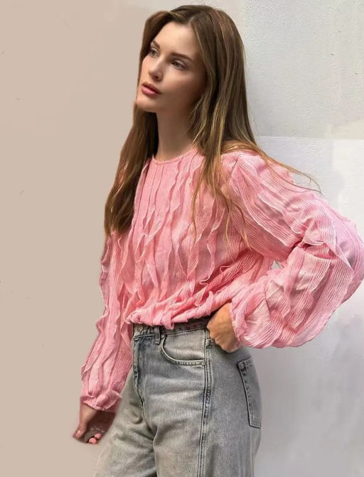 • K13520 Лонгслив с рюшами РОЗОВЫЙ