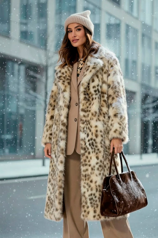 Добавьте элегантности своему образу с этим длинным пальто из искусственного меха под рысь. Английский воротник придает ему утонченность, а скрытая застежка на кнопки и боковые карманы делают его максимально практичным. Стильно, лаконично и всегда ярко идеальный выбор для современного гардероба.