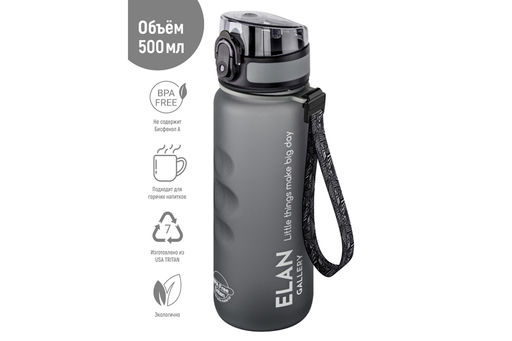 Бутылка для воды Style Matte от Elan Gallery это практичное и стильное решение для ценителей активного образа жизни. Размер ёмкости 6,5х6,5х23 см. Высота до крышки 19 см. Объём 500 мл. Изделие выполнено из тритана прочного, безопасного материала, не содержащего бисфенол А. Этот пластик не впитывает запахи и не влияет на вкус напитков. Бутылочка подходит как для холодной, так и для горячей жидкости. Освежитесь любимыми летними напитками в жару или согрейтесь ароматным чаем зимой! Матовое покрытие и углубления для пальцев обеспечивают комфортное использование на прогулке, в офисе и на тренировке в зале. Надёжная крышка с герметичным клапаном препятствует проливанию, а встроенное ситечко позволит заваривать напитки с травами и фруктами. С удобным ремешком бутылку можно закрепить на рюкзаке или запястье это позволяет брать её в путешествия, поездку на велосипеде или автомобиле. Многоразовая дорожная бутылка подходит как для туризма, так и для пикника на природе. Удобная форма делает её не только туристическим, но и спортивным инвентарём. Пластиковая ёмкость для питья прекрасный вариант для занятий фитнесом, йогой или бегом в спортзале или на свежем воздухе. Она также дополнит занятия велоспортом в качестве велосипедного аксессуара. Это надёжный помощник спортсменам во время игры в футбол или волейбол, занятий гимнастикой и танцами. Подходит как для взрослых, так и для школьников её можно взять в школу и на занятия физкультурой. Благодаря универсальному дизайну и серому цвету она подойдёт как девочкам, так и мальчикам в качестве школьного аксессуара. Функциональная бутылка в дизайнерской картонной упаковке это готовый подарок для женщин и мужчин. Не подходит для микроволновой печи, посудомоечной машины и стерилизатора. В коллекции бренда Элан Галерея представлена разнообразная посуда и товары для дома на любой вкус. Спортивные аксессуары из серии Style Matte помогут следить за водным балансом, где бы вы ни находились!
