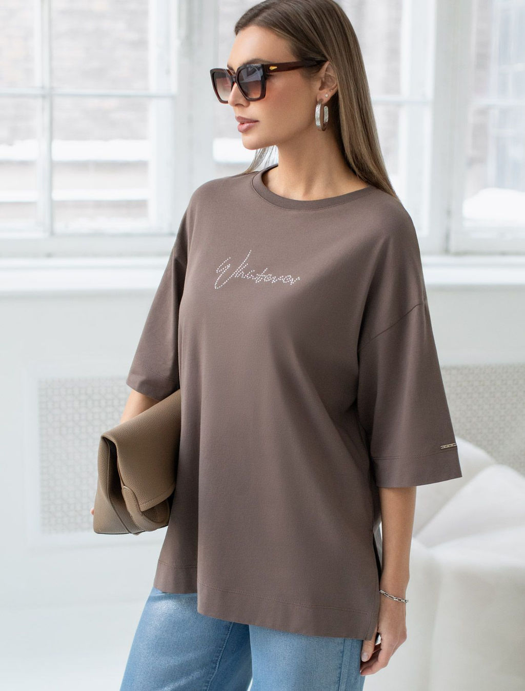 • Футболка оверсайз с принтом стразами из премиального хлопка с эластаном