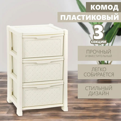 Комод Виола 3-х секционный - практичный и функциональный предмет мебели, предназначенный для хранения постельного белья, различного текстиля и одежды. За счёт компактных размеров, представленная модель не загромождает пространство и будет уместно смотреться даже в небольшой комнате. Благодаря оригинальному дизайну передней панели под ротанг и лаконичному оттенку, мебель гармонично впишется в любой современный интерьер и поможет расставить цветовые акценты.