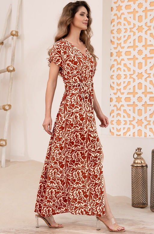 Удлиненное платье-рубашка Mia-Amore с центральной застежкой на пуговицы и коротким рукавом, выполнено из принтованной вискозы. Линию талии можно подчеркнуть за счет пояса. Состав:100% вискоза