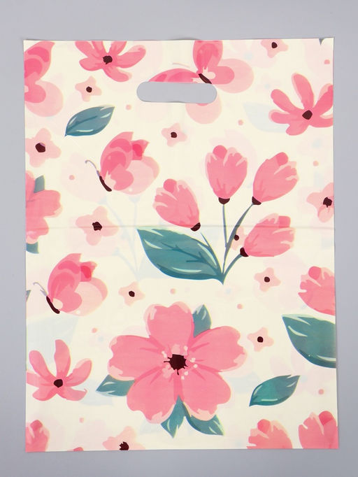 • Цена за 50 шт. Пакет полиэтиленовый с вырубной ручкой "Цветы" 30 х 40 см 60 мкм