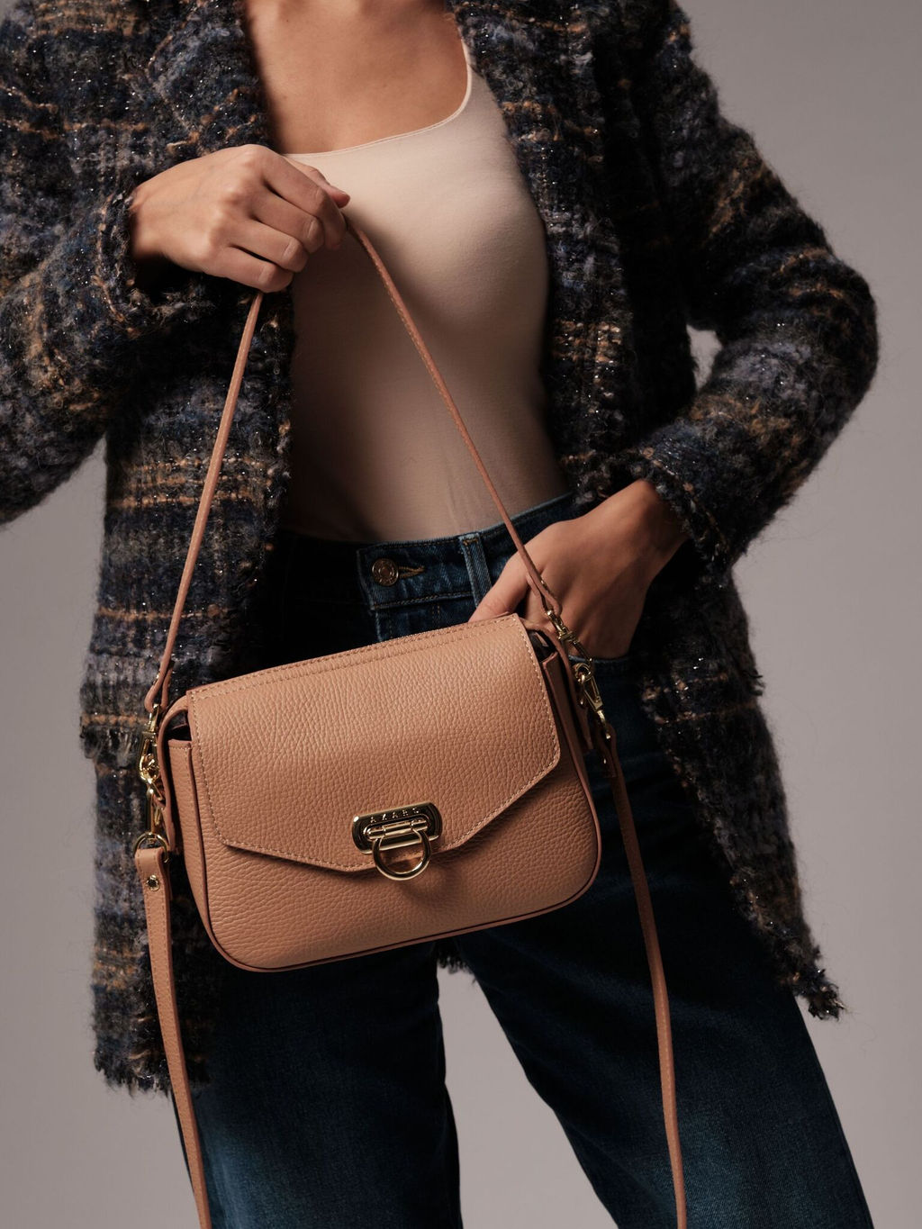 Женская сумка Azaro 3684 бежевая нуга продается в комплекте с 2 ремнями - удобным коротким для ношения в руке или на плече, а также длинным, который позволяет носить ее через плечо как кросс-боди. Это делает модель практичной и адаптируемой под разные ситуации.