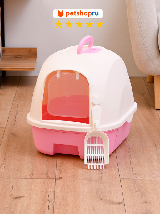 • Туалет домик пластиковый с выдвижным поддоном, с совком, 53*41*41, цвет в ассортименте PS3254