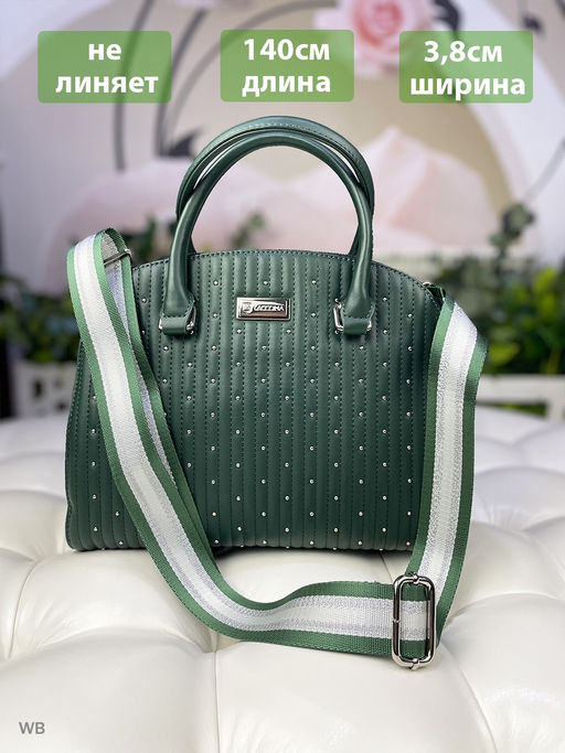 Ремень для сумок. Цвет фурнитуры серебряный.  Длина ремня (тесьма+ карабины) 140 см.