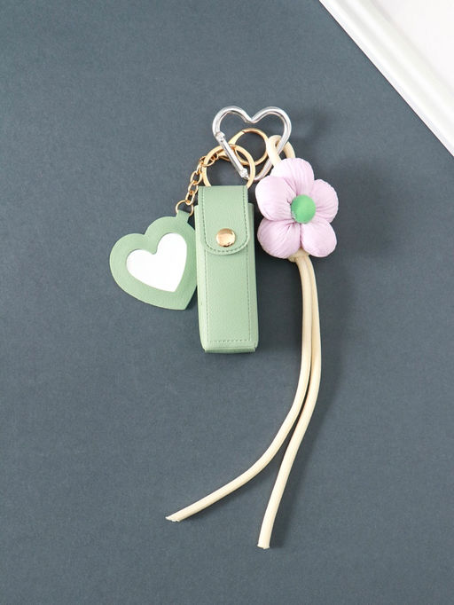 Брелок для ключей на кольце с карабином, с зеркалом «Для помады. Цветок», на рюкзак, сумку, кожзам, мятный, 20×3×3.5 см