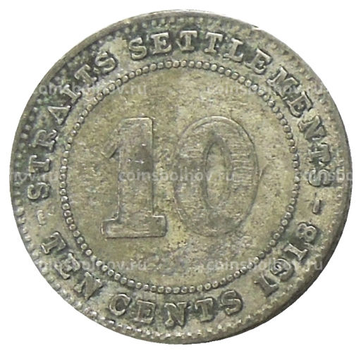 • Монета 10 центов 1918 года Стрейтс Сетлментс