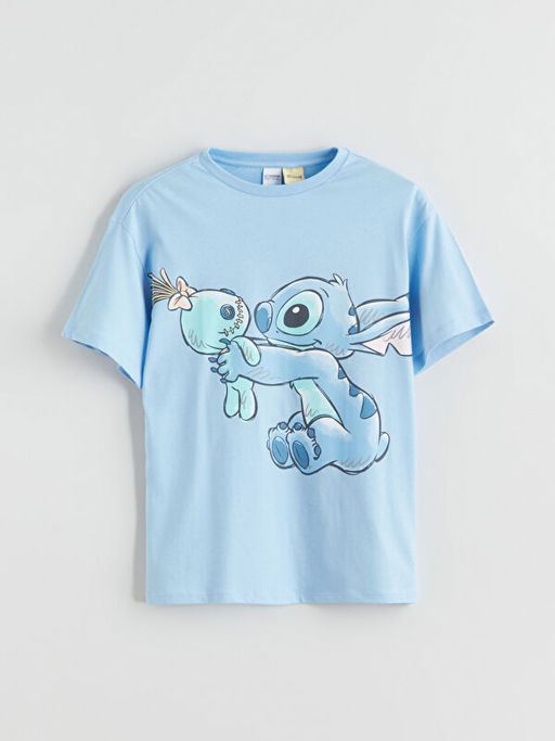 • Bisiklet Yaka Stitch Bask?l? K?z ?ocuk Ti??rt