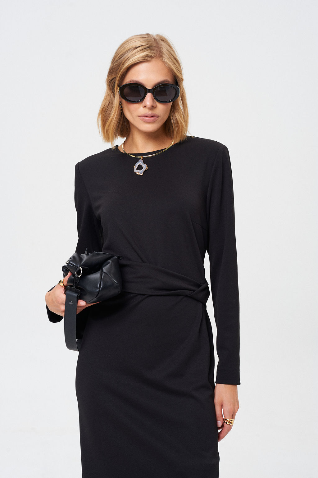 Платье, которое идеально садится на фигуру! Благодаря конструктивному решению на талии, создается идеальный стройный силуэт. Длина платья 125 см. Длина рукава от основания шеи 72 см