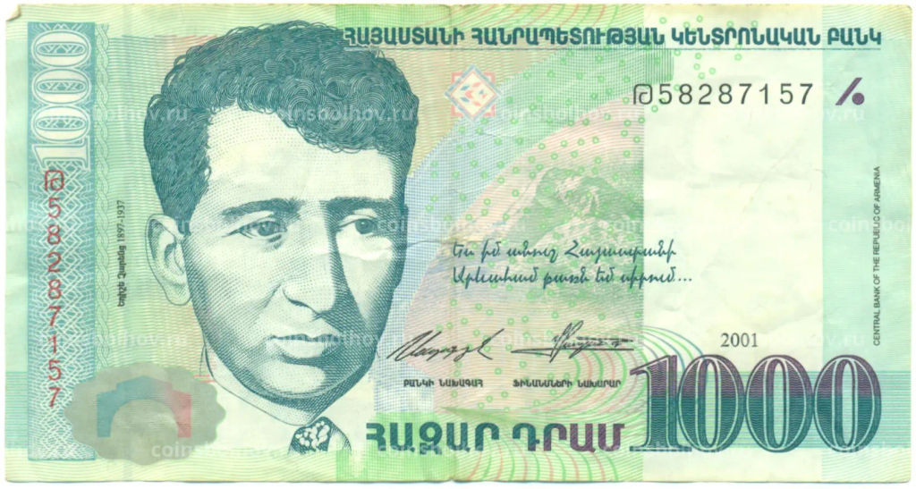 • Банкнота 1000 драм 2001 года Армения