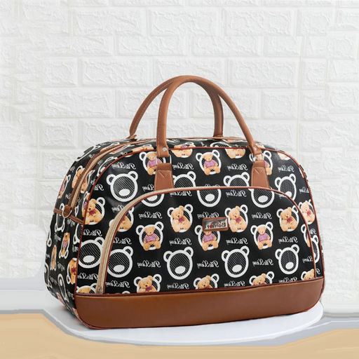 Стильная дорожная сумка из прочной экокожи с ярким декоративным принтом.