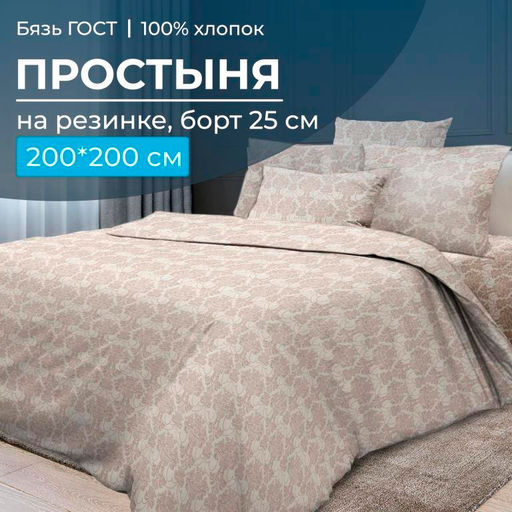 Артикул: Простыня на резинке 200*200 см, бязь ГОСТ, борт 25 см (Бельведер бискотти)