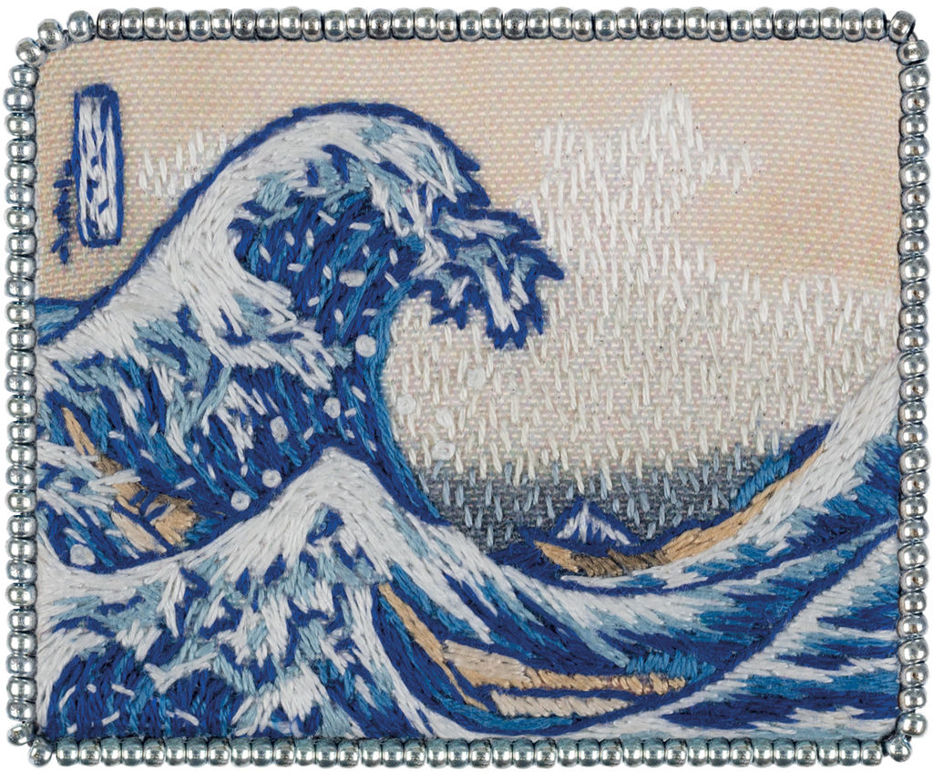 Описание Новая коллекция наборов для вышивания брошей в технике гладь от PANNA создана по мотивам Шедевров Мирового Искусства! В каждый набор входит все необходимое: подробная инструкция по вышиванию, иллюстрации к инструкции, хлопковая ткань с напечатанным рисунком, х/б нитки мулине Gamma, иглы для вышивания Gamma, картонная основа для броши, чешский бисер, искусственная кожа и крепление для броши. Большая волна в Канагаве, также известная как Большая волна, из серии цветных гравюр Тридцать шесть видов Фудзи Кацусика Хокусай (японец, 1760-1849) Многоцветная ксилография, чернила и краски на бумаге 26 x 38 см, около 1830-32