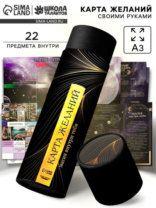Описание товара Исполнение желаний - мечта всех людей на планете. Помочь правильно донести желания до благодарной Вселенной поможет карта желаний, работа со своими мыслями и аффирмации.Карта желанийПоговорив честно с самим собой, точно решив, что хочешь больше всего на свете в разных сферах - фиксируй это на нашей карте желаний. И приклеивай соответствующую картинку, там самым визуализируй свои мысли.АффирмацииАффирмации работают по принципу замещения. В определенный момент времени разум может удерживать только одну-единственную мысль, поэтому суть аффирмаций заключается в наполнении и удержании в сознании мыслей, которые подкрепляют ваше желание.Трекер привычекЭто календарь, в котором фиксируется выполнение либо же нет записанной задачи. Таким образом очень легко отследить регулярность конкретных действий, провести анализ проделанной работы.Чек-лист заботы о себеЗабота о себе — это не эгоизм и не зацикленность исключительно на своих чувствах и проблемах. Известно, что люди, желающие улучшить жизнь окружающих, легче развивают способность заботиться о себе. Чтобы процесс изменений проходил быстрее и проще, рекомендуется составить чек-лист заботы о себе.Колесо балансаКолесо баланса — это инструмент, который помогает оценить, насколько вас устраивает положение дел в разных сферах жизни, от семейных отношений до гражданской активности. Эту методику часто применяют в психологии и практиках саморазвития, чтобы обрести гармонию и равновесие, «окинуть взглядом» свою жизнь и расставить приоритеты, зафиксировать «прогалины» и поставить цели по развитию.Список желанийЕсли вы еще не задумывались о том, чего хотите от жизни, список желаний может стать хорошим началом для того, чтобы прояснить свои жизненные цели. Размышляя о себе и записывая свои цели, вы лучше узнаете себя и, возможно, даже найдете свою личную цель в жизни.Лунный календарьЛуна — это не только естественный спутник Земли, как мы знаем со школьных уроков окружающего мира, но и небесное светило, влияющее на многие процессы на нашей планете. Например, от нее зависят приливы, отливы, уровень воды, изменения температуры. Астрология утверждает, что Луна сказывается на жизни человека: на его активности, склонности к депрессивным состояниям или продуктивности. Для того, чтобы отслеживать благоприятные периоды, существует лунный календарь на год, фазы Луны в котором прописаны на каждый месяц. Возраст: От 12 лет. Тематика праздника: 8 Марта. Вид: Карты желаний. Бесплатная доставка: Да. Наша разработка: Да. Размеры товара: 8.7/8.7/34.5.