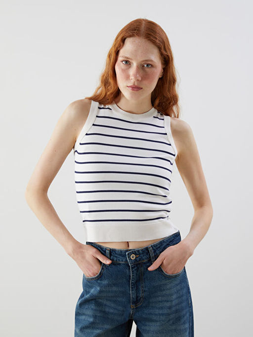 Bisiklet Yaka ?izgili Kad?n Triko S?veter