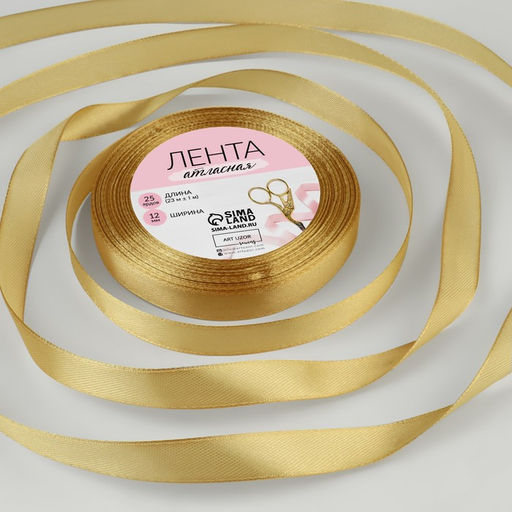 • Цена за 3 шт. Лента атласная, 12 мм, 23±1 м, золотисто-бежевая №186