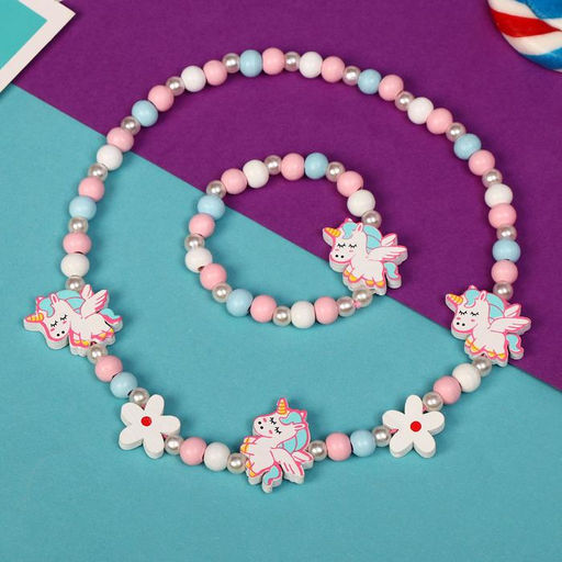Цена за 2 шт. Набор детских украшений Выбражулька «Единорожки милые», 2 предмета: бусы, браслет, розовый