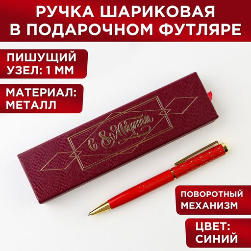 Ручка шариковая, синяя паста, 1.0 мм, в футляре, металл С 8 Марта