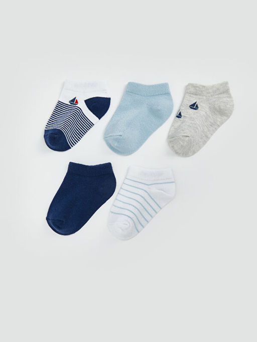Bask?l? Erkek Bebek Patik ?orap 5li