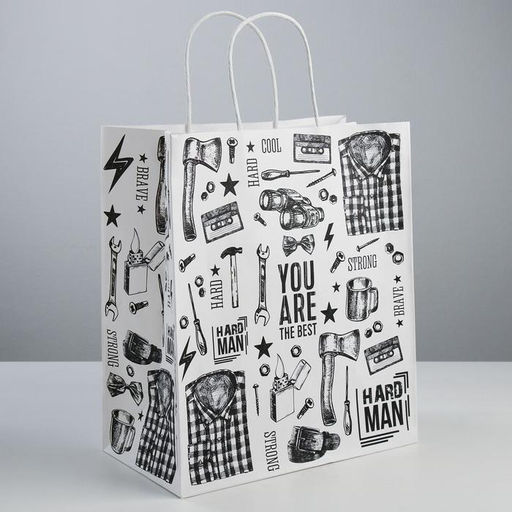 Цена за 2 шт. Пакет подарочный крафт, упаковка, Hard man, 28?32?15 см