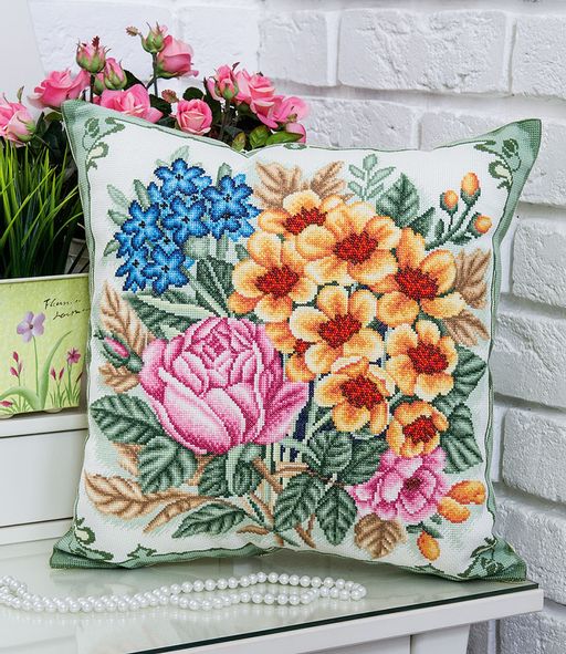 • Набор для вышивания PANNA PD-1695 Подушка Цветочный перезвон 40.5 х 40.5 см