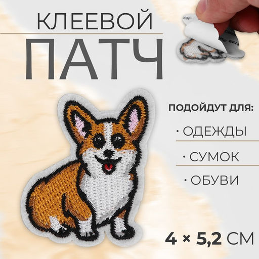 Цена за 5 шт. Патч клеевой на одежду, обувь, сумки «Корги», 4×5.2 см