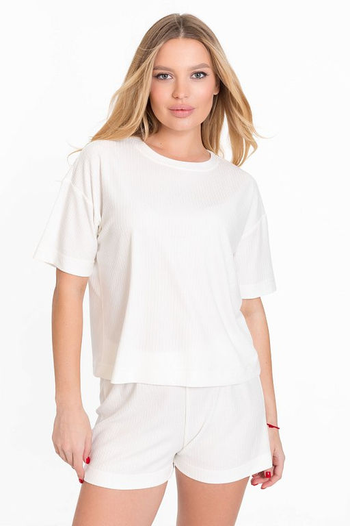 ВНИМАНИЕ: Изображение иллюстрирует модель товара. Фактический цвет указан в названии и может отличаться от представленного на фото. Женская пижама включает в себя футболку и шорты, выполненные из интерлока ринг-вискон в нежном молочном цвете. Футболка прямого кроя с спущенным коротким рукавом и круглым вырезом горловины обеспечивает комфорт и свободу движений. Мягкое и приятное на ощупь полотно интерлок ринг-вискон будет нежно ложиться на тело, создавая ощущение комфорта и уюта. Шорты короткие, с поясом на широкой резинке, обеспечивают идеальную посадку и удобство. Такой дизайн позволяет свободно двигаться и чувствовать себя комфортно даже во время сна. Молочный цвет - нейтральный и элегантный, идеально подходит для пижамы, создавая атмосферу спокойствия и уюта.