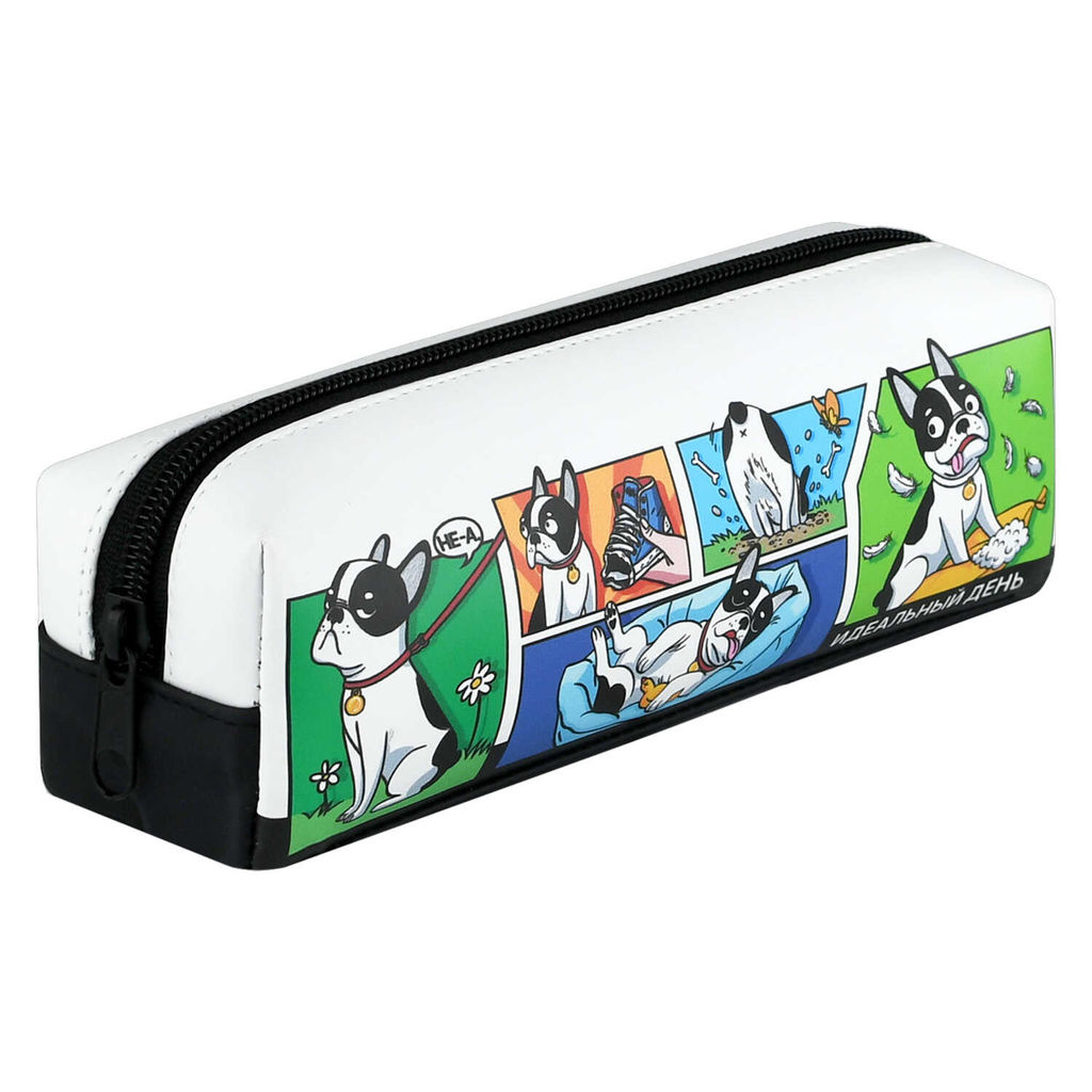 Пенал школьный Феникс+, арт.71947/ 25 ДЕНЬ БУЛЬДОГА 19,5х5,5х6 см, искусственная кожа, молния, цифровая печать, ПЭТ-пакет с европодвесом и картонным вкладышем).