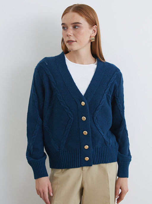 V Yaka Desenli Kad?n Triko H?rka