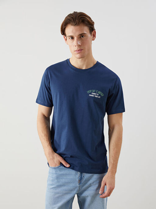 • Bisiklet Yaka K?sa Kollu Bask?l? Penye Erkek Ti??rt