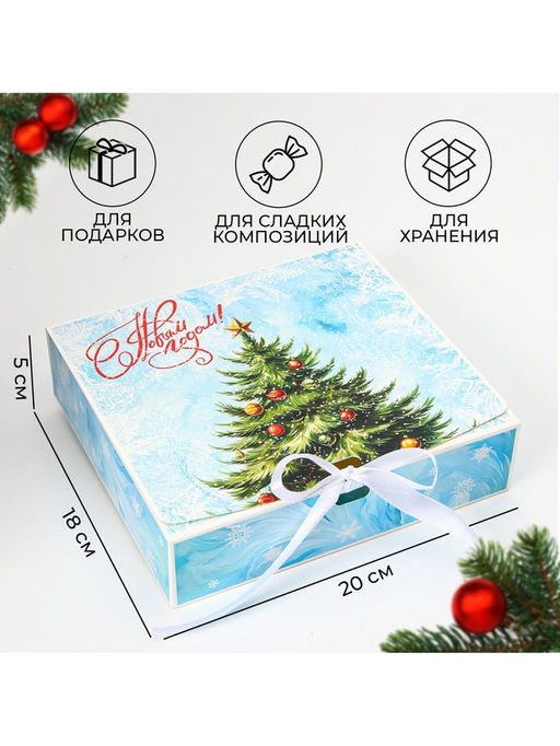 • Цена за 3 шт. Коробка подарочная новогодняя складная, упаковка, «Снежная Ёлка», 20×18×5 см