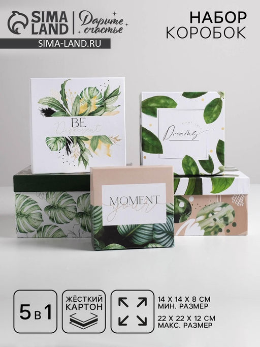 • Набор коробок 5 в 1, упаковка подарочная, «Тропический», 14×14×8‒22×22×12 см