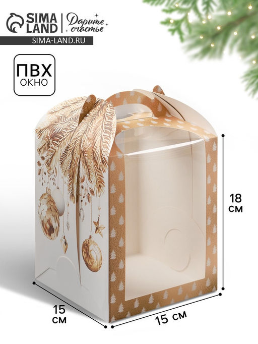 • Цена за 5 шт. Складная коробка под маленький торт «Новый год: Золотые шары», 15×15×18 см